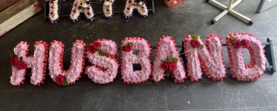 Each letter measures 14 inches in height and are ribbon edged in a colour of your preference. Rose corsages are added to each letter to compliment your ribbon edge.